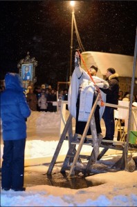 По традиции, большое количество жителей нашего города ежегодно принимают участие в крещенских купаниях на городском пруду и на территории Пересветовского подворья. В ночь с 18 на 19 января было совершено великое освящение воды на Макаркином пруду, после которого многие молящиеся, в том числе и дети, окунались в святую крещенскую воду. Кроме того, на территории Подворья в обливании святой водой приняли участие около 40 человек, в том числе воспитанники Православного военно-патриотического клуба «Пересвет».