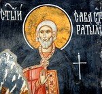 Мученик Савва происходил из готфского племени. Своей храбростью он достиг высокого чина воеводы-стратилата и служил при императоре Аврелиане (270–275). С юности Савва был христианином и усердно следовал заповедям Христа, помогал неимущим, посещал в темницах заключенных христиан. За чистую и добродетельную жизнь святой получил от Господа дар чудотворения и Именем Христа исцелял больных, изгонял бесов. Когда император узнал, что святой Савва христианин, он потребовал от него отречения. Мученик сбросил воинский пояс и подтвердил, что не оставит свою веру. Его били, опаляли свечами, бросили в котел со смолой, но мученик оставался невредимым. Видя его мучения, уверовали во Христа 70 воинов, которых тут же усекли мечом. Святого Савву бросили в темницу. В полночь во время молитвы мученику явился Христос и осиял его светом Своей Славы. Спаситель повелел ему не бояться, но дерзать. Укрепленный, мученик Савва перенес наутро новые мучения и был утоплен в реке († 272).